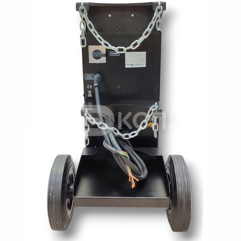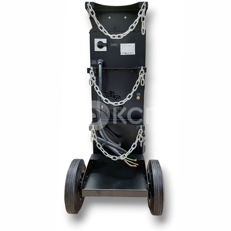 Небольшой вес источника при 31,4 кг и 4-х колесная интегрированная телега с платформой под баллоны, позволяет перемещать сварочный аппарат увеличивая зону сварочных работ.