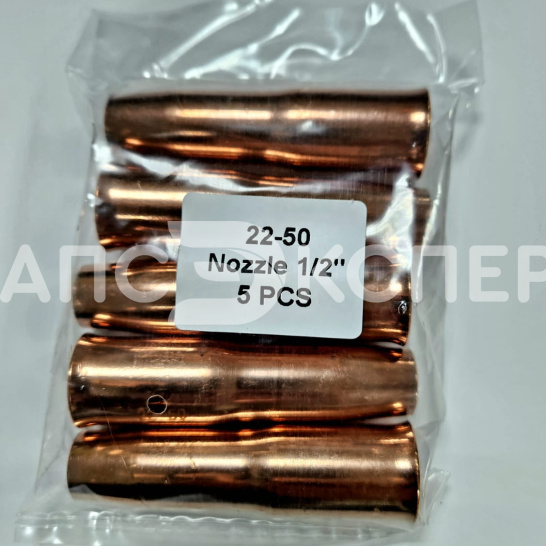 Сопло изготовлено из термостойкой бронзы, что обеспечивает стойкость к брызгам металла и перегреву, а также увеличивает срок службы. Поставляется в упаковке 5 шт.