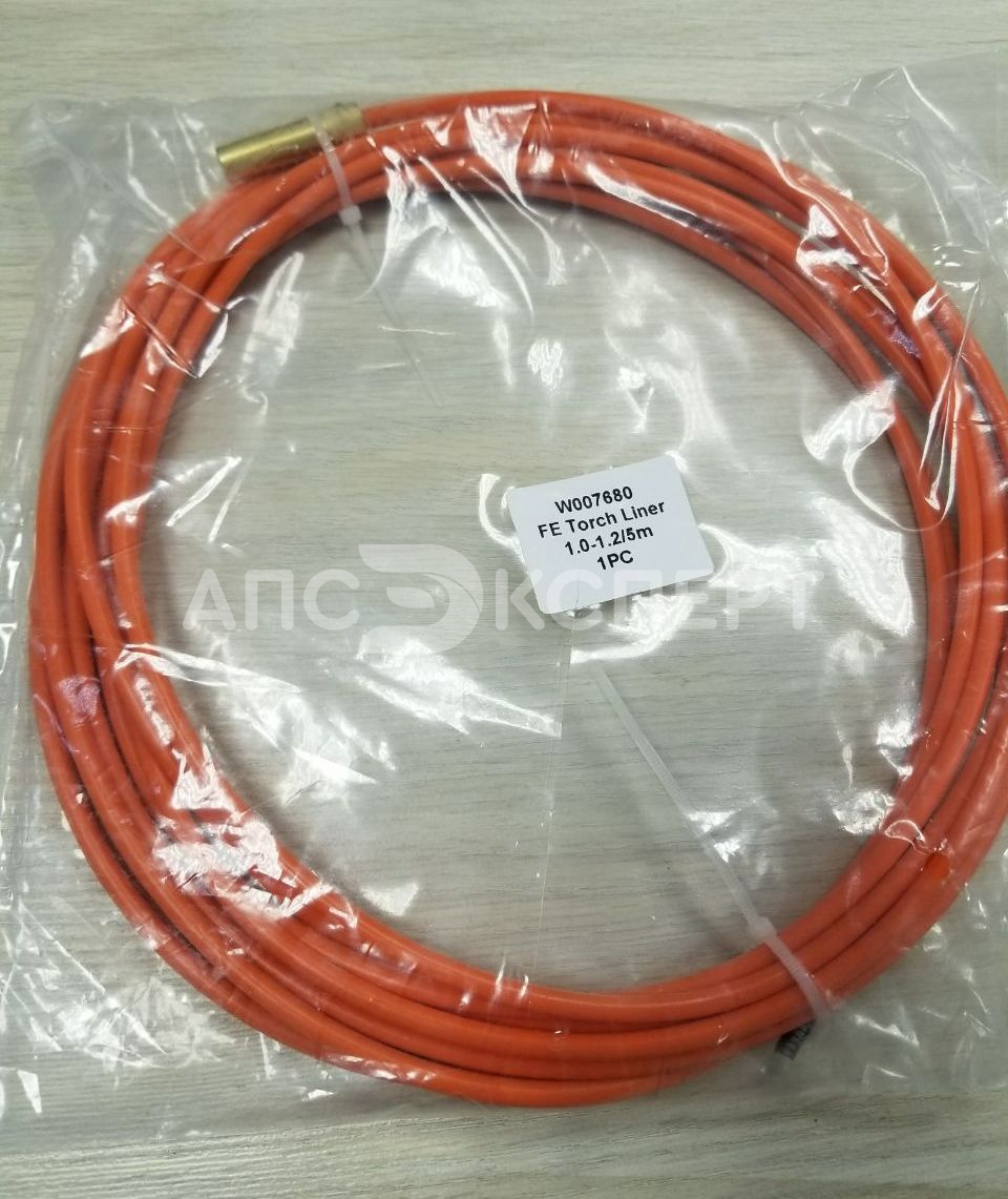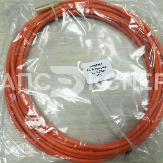 Направляющий канал (лайнер) W007680 предназначен для полуавтоматической сварки (MIG/MAG) алюминиевой и нержавеющей проволоки диаметром 1,0–1,2 мм. Длина канала составляет 5 метров. Его ключевая особенность — тефлоновое покрытие, которое значительно снижает трение при подаче мягких и склонных к деформации материалов (таких как алюминий), обеспечивая плавное движение проволоки без заеданий и образования «бород».